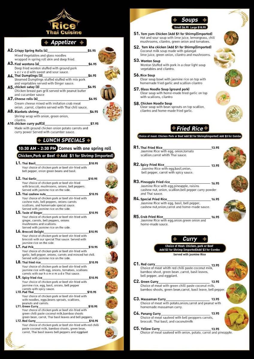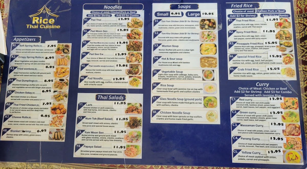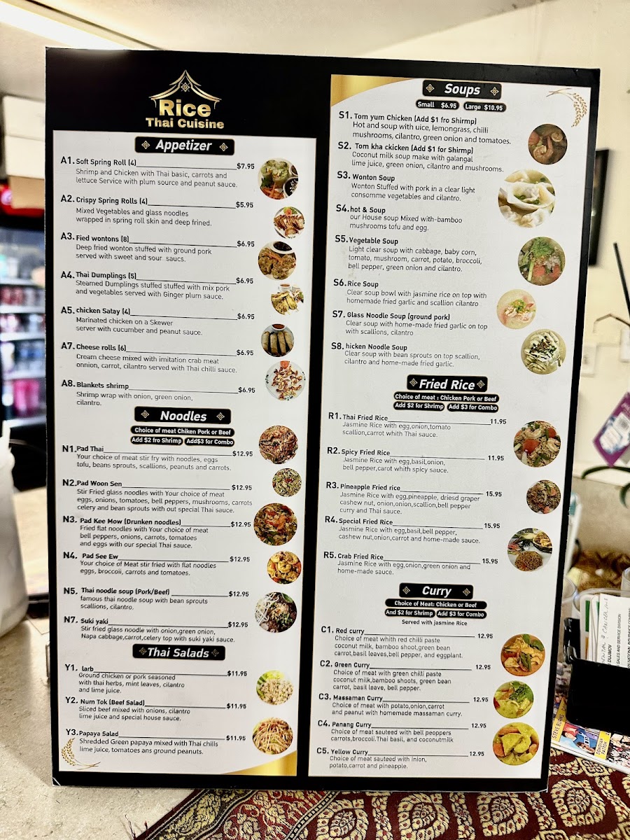 Overall, Rice Thai Cuisine delivers a rich array of traditional Thai dishes at reasonable prices, making it a great spot for both lunch and dinner.